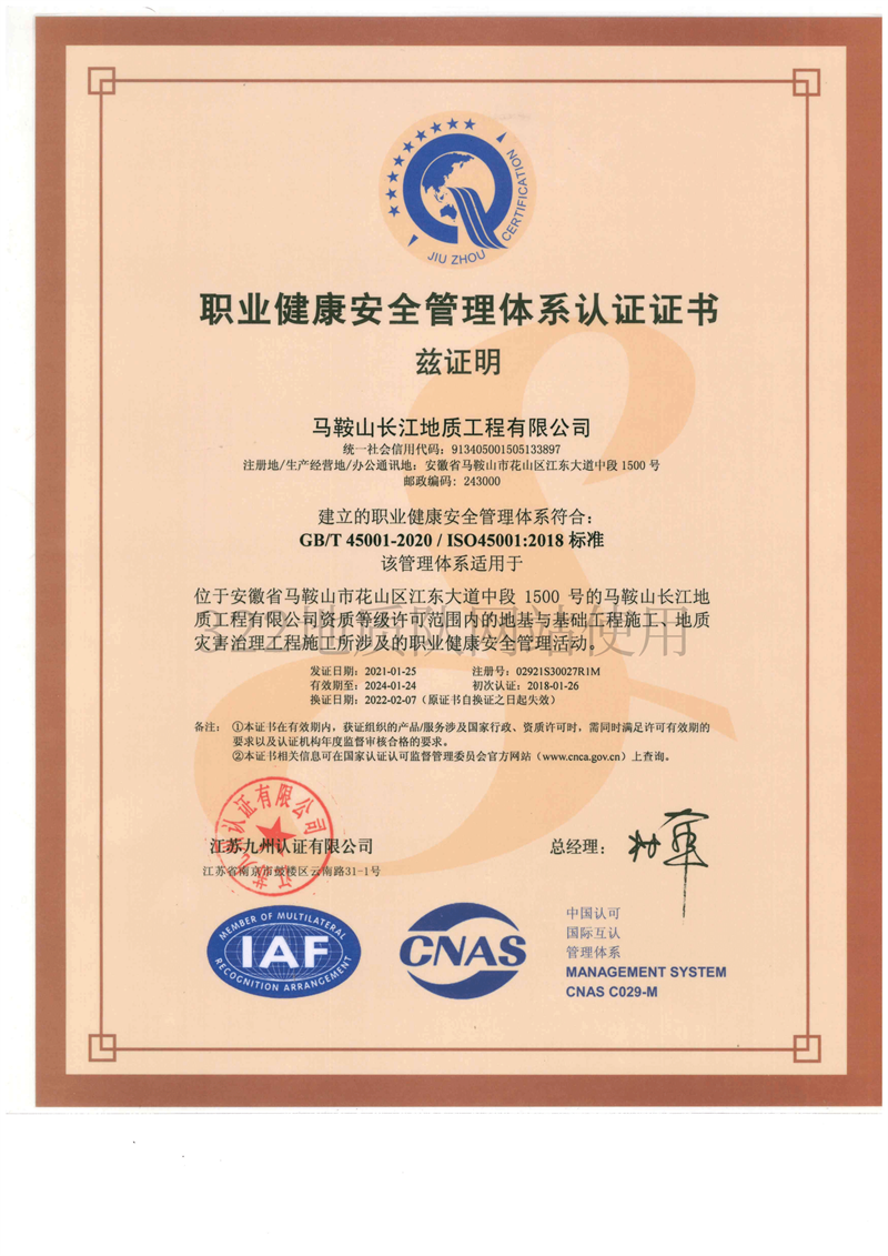 • 馬鞍山長江地質工程有限公司職業健...